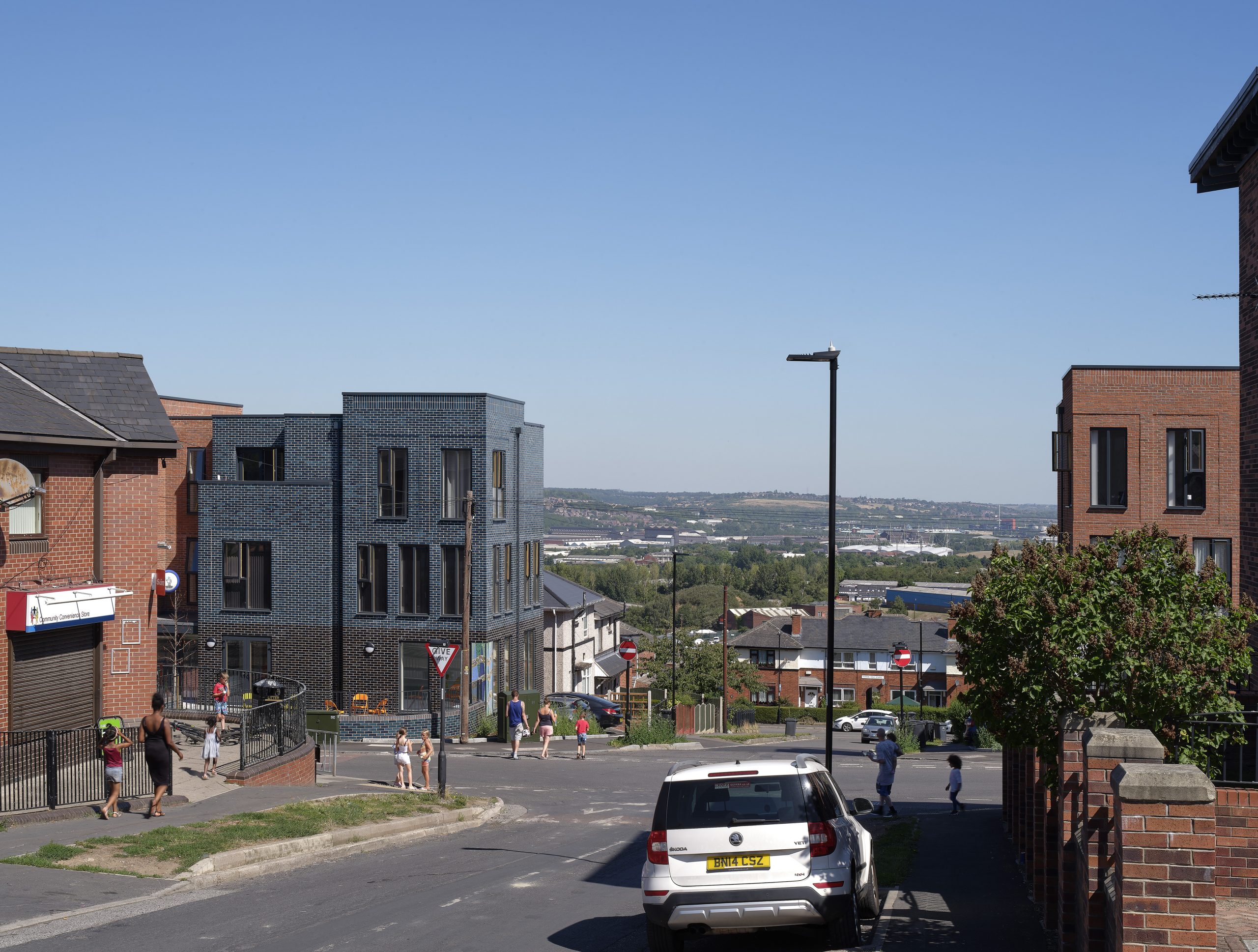 The Wybourn Village Centre is part of a wider urban regeneration project in an inner-city neighbourhood in Sheffield delivering 12 apartments and a new Community Hub named after beloved local councillor Pat Midgely, who gave years of service to her community before she passed away in 2020. Great Places Housing Group developed the project in consultation with the local community and in partnership with Manor & Castle Development Trust.