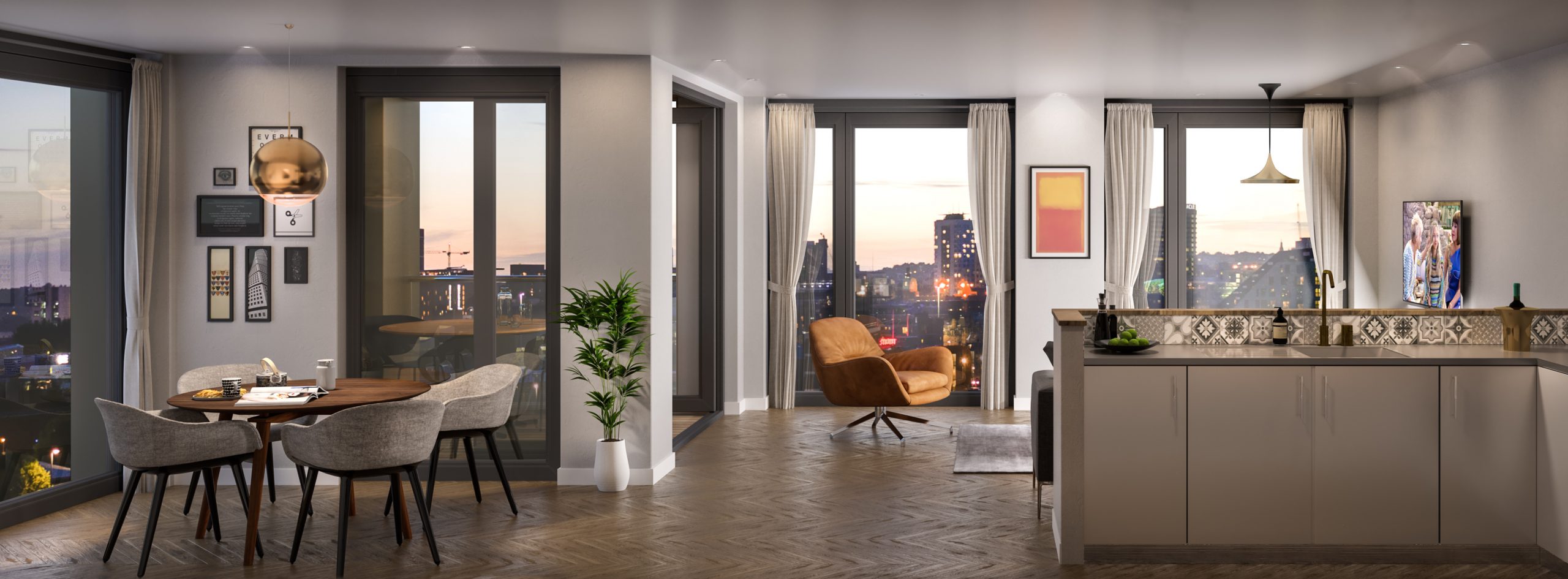 The scheme includes 60 street facing townhouses each with their own front door and stepped entrance from street level. The raised garden space provides privacy whilst giving life, animation and casual surveillance to the street. Level access is provided at first floor level from within the main building. The apartments have many variations across the scheme, reflecting and making the most of the geometry of the buildings and of the site. The varying geometries enhance the opportunity for views, outlook, daylighting and animation of the building facades. Extensive glazing provides light filled rooms and unbroken city views from Penthouse level. The apartments and town houses have all been designed to meet or exceed the National Space Standards and all feature either private balconies, terraces or gardens.