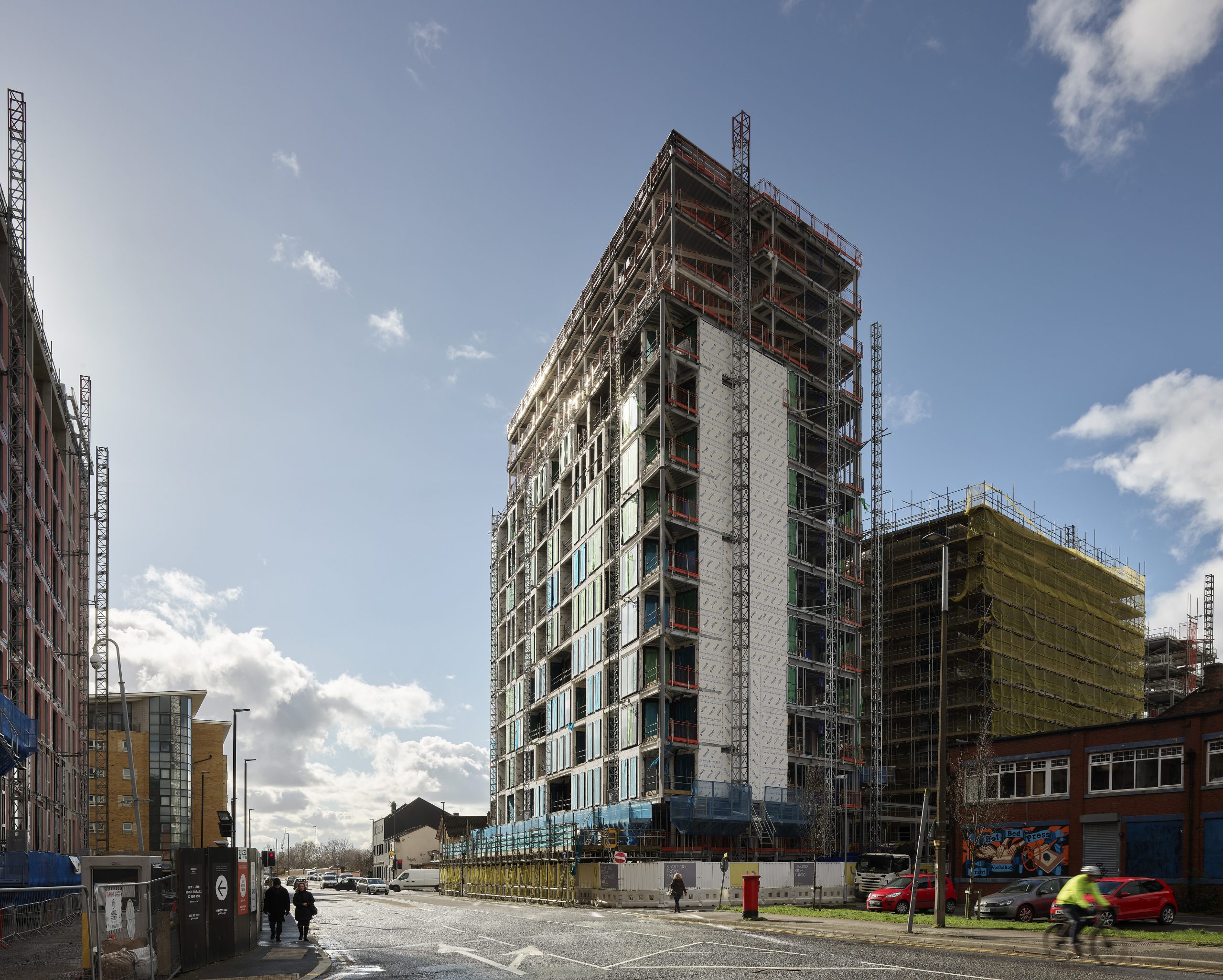 Located adjacent to Middlewood Locks and near to Salford’s Chapel Street Regeneration Area, Landmark responds to the wider context and future aspirations of both Salford and Manchester. The 14 storey development dominates its prominant location on a key junction overlooking both cities and forms a key part of the regeneration of this formerly light industrial area.