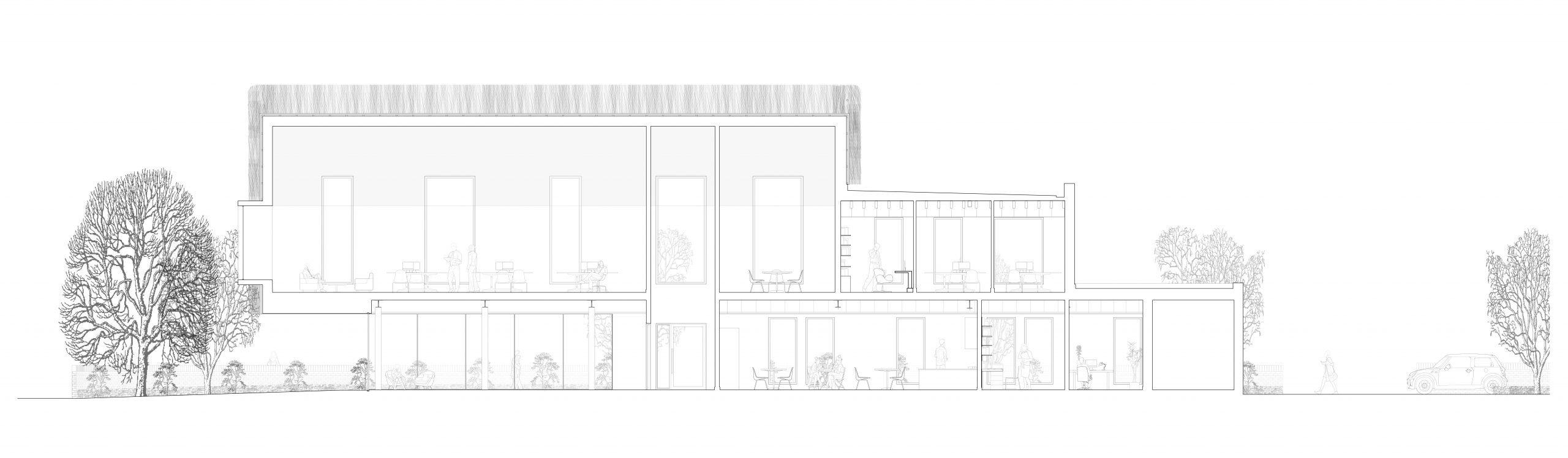 DK-Architects worked closely with the contractor, the National Society of Master Thatchers, and Jhai Building Control Services to deliver the first building in the UK to employ vertical thatching on such a scale. Along with giving the building a bold distinctiveness, the thatch contributes to the local character of the area, with a large number of traditional thatched cottages found throughout Formby.