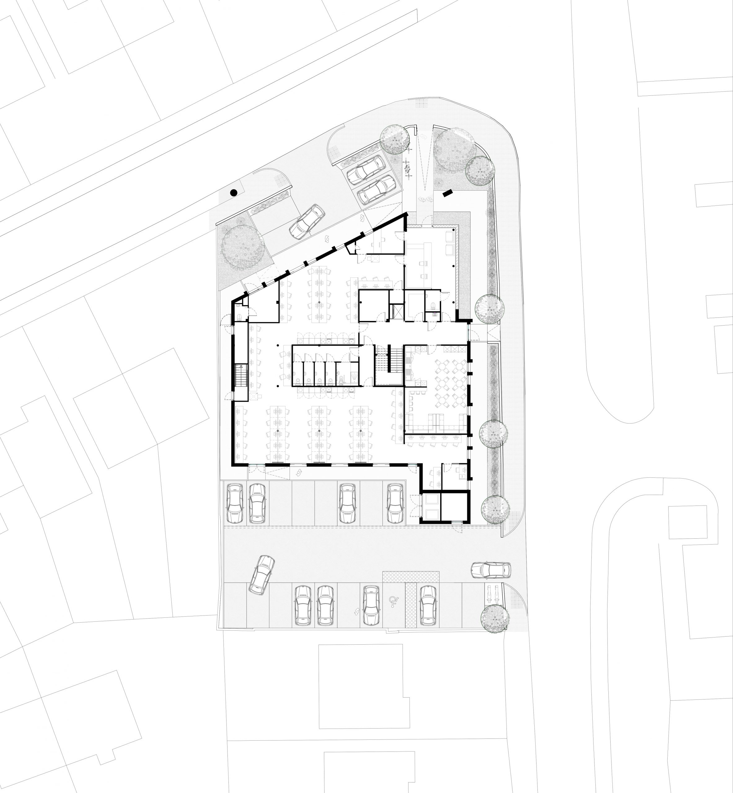 Internally, the development provides a range of spaces from open plan offices for telesales to various smaller team and cellular offices, meeting spaces, a reception, a café area and a dramatic vaulted space containing a large board room and manager’s office – all fitted out with bespoke timber finishes and high-quality furniture and fittings.